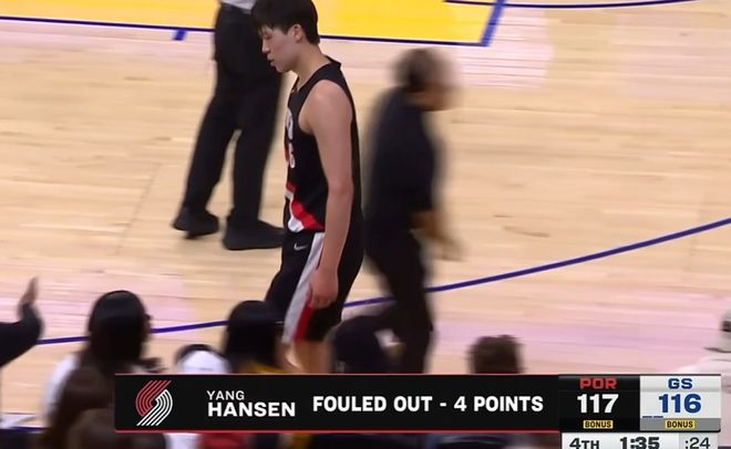 雪上加霜的是,杨瀚森作为一个新人,在场上很难获得队友的支持,开拓者此时场上的几位锋线都是单打独斗为主,同时勇士更是有针对性地加快了攻防转换的速度。一时间杨瀚森只能不断地在场上练习折返跑。