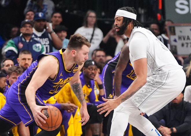 包括第三梯队的独行侠、马刺、灰熊等球队,大前提是保持健康状态。独行侠在上赛季送走东契奇后,联盟“补偿”性质的让他们抽到了状元签,弗拉格被寄予厚望,夏联弗拉格打了两场比赛,场均20.5分5篮板2.5助攻1.5抢断,没有明显短板,而且有不错的进攻发起能力。季前赛的两场比赛,弗拉格合计打了38分钟,拿到21分9篮板7助攻3抢断,个人综合实力确实很强。如果再算上欧文在赛季中段回归,独行侠纸面上有实力去冲击季后赛门票。但问题的关键在浓眉这里,湖人不让他打四号位,是有原因的。